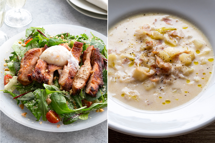 タンドリーチキンのシーザーサラダ仕立て&田舎風じゃがいもと長葱のスープ(1キット2人前)