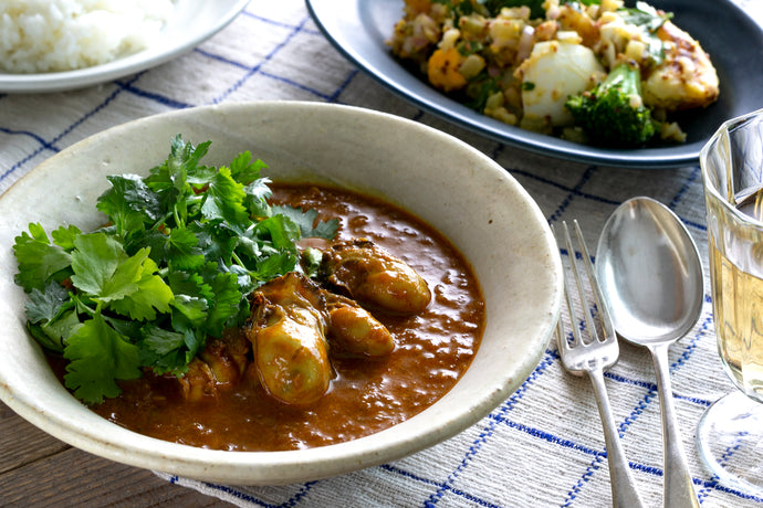 スパイス香る牡蠣カレー パクチー添え&ジャガイモと卵のごろごろグリビッシュサラダ(1キット2人前)