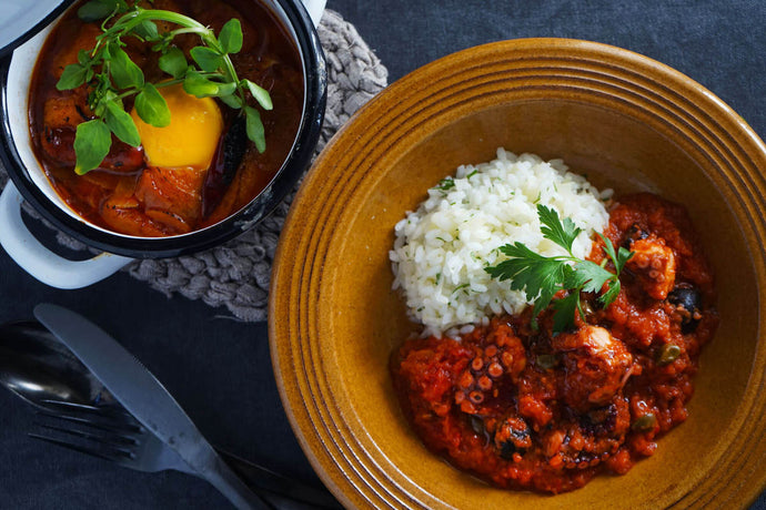 タコのトマト煮~ディルのライスサラダ添え~&にんにくとチョリソーのスープ(ソパ・デ・アホ)