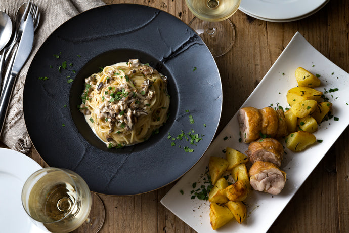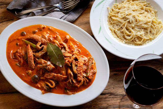 トリッパとキノコのトマトクリーム煮込み&チーズと黒胡椒とバターのパスタ~カチョエペペ~(1キット2人前)