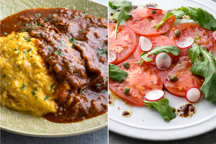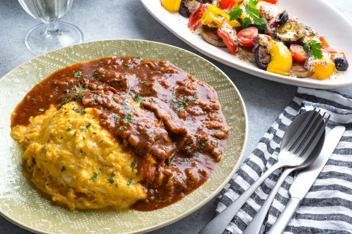 ハッシュドビーフのとろとろオムライス&トマトとルッコラのカルパッチョ〜バルサミコドレッシング〜(1キット2人前)