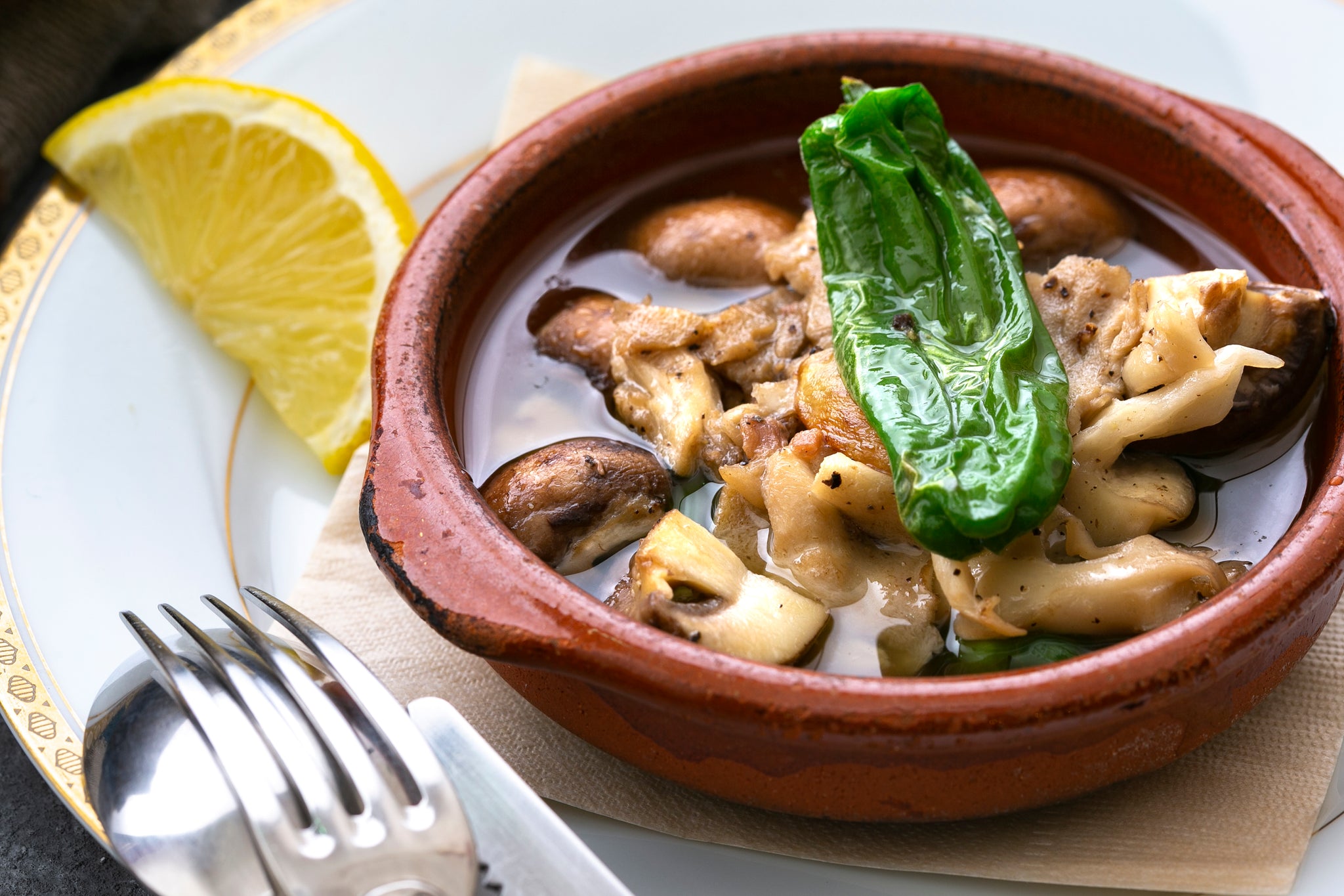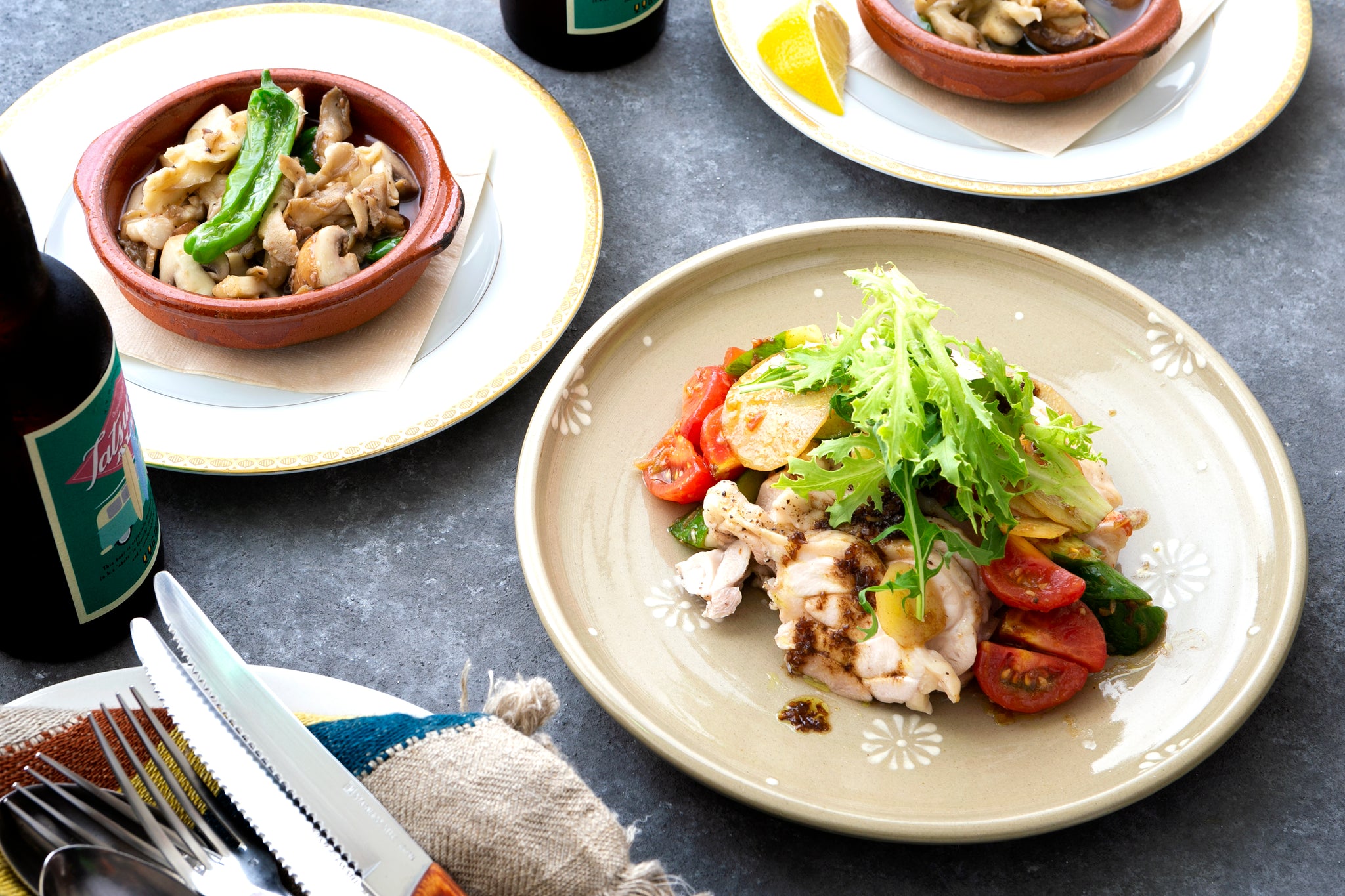 副菜のアヒージョは、簡単ながらも本格的な味わいです。レストラン流のおつまみをお楽しみください。